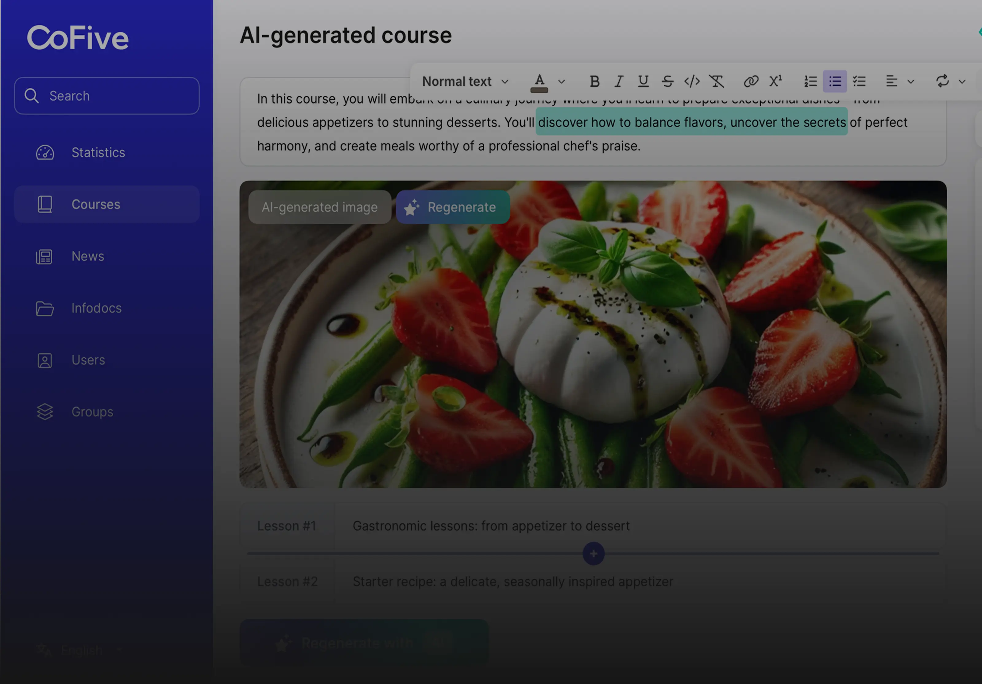 1. AI Course Generator: HR teams and managers can create multi-lesson courses with text, visuals, and quizzes in under 10 minutes. Content is editable but AI provides 80-90% of the draft instantly.